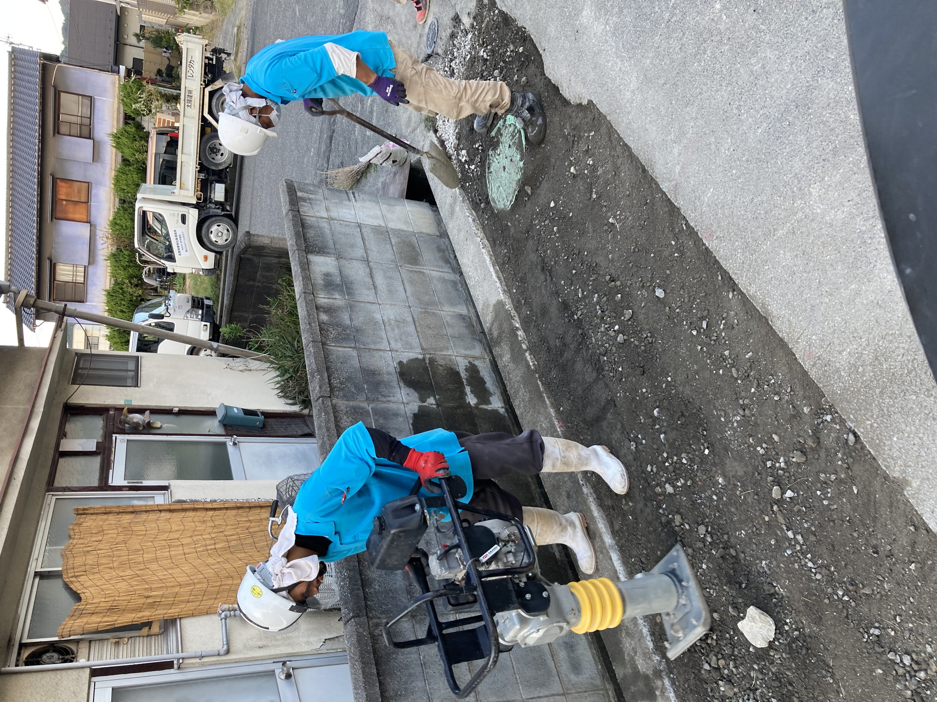 土を舗装材料で覆い、通路やエリアをつくる作業です。土を固めて整地し、歩行や通行がしやすい状態にします。
